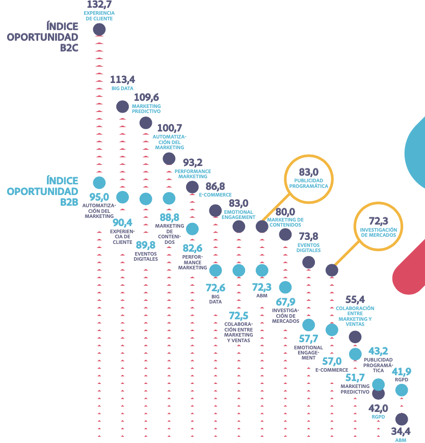 Asimismo en B2C la publicidad programática y el performance marketing adquieren relevancia a la hora de alcanzar al cliente final.
